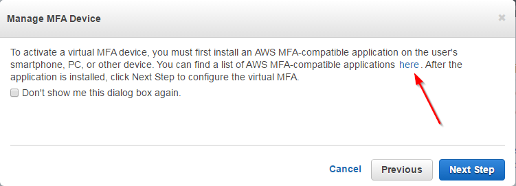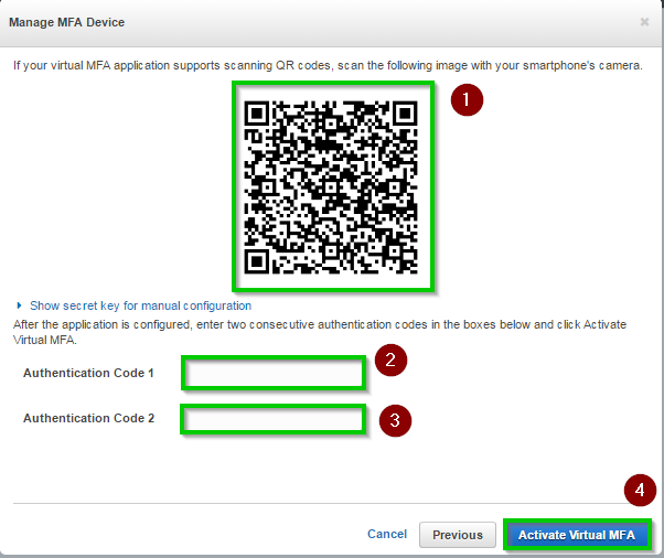 We recommend that when you configure a virtual MFA device to use with AWS that you save a copy of the QR code or the secret key in a secure place. That way, if you lose the phone or have to reinstall the MFA software application for any reason, you can reconfigure the app to use the same virtual MFA. This avoids the need to create a new virtual MFA in AWS for the user or root account.