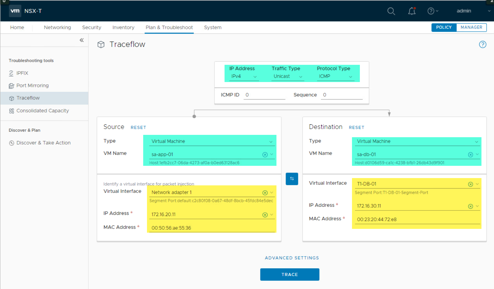 Narzędzie można znaleźć w NSX-T 3.x w Plan & Troubleshoot > Traceflow