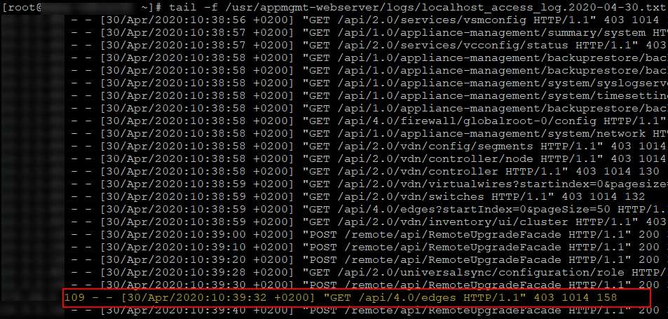 Log na samym NSX mangerze jest dostępny jest po wejściu bezpośrednio na “shella”, które nie jest bezpośrednio dostępny. Można go jednak włączyć tutaj :