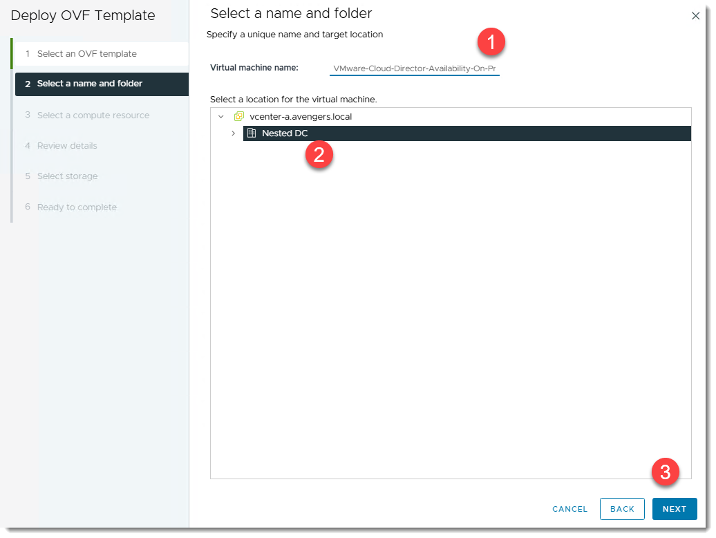 - Wprowadź unikalną nazwę dla instalacji, np. “VCDA-Appliance”.