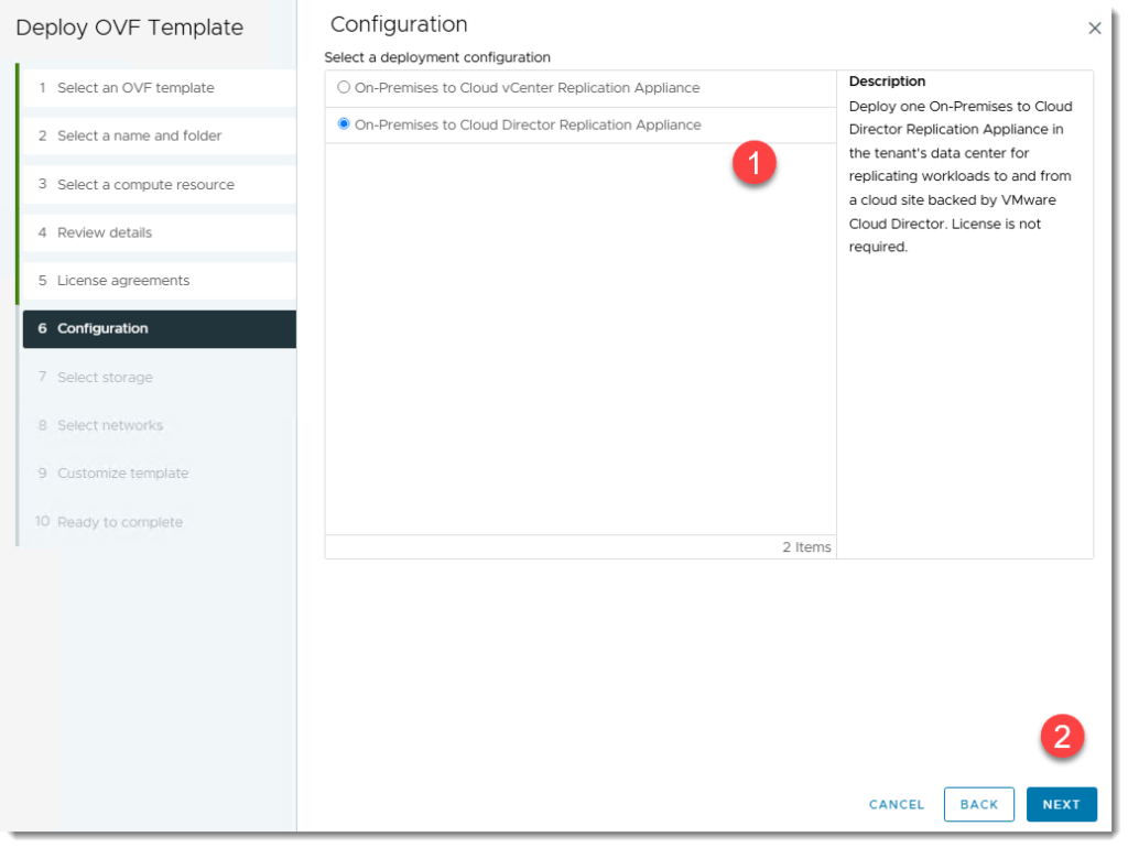 - Wybierz opcję “On-Premises to Cloud Director Replication Appliance”.