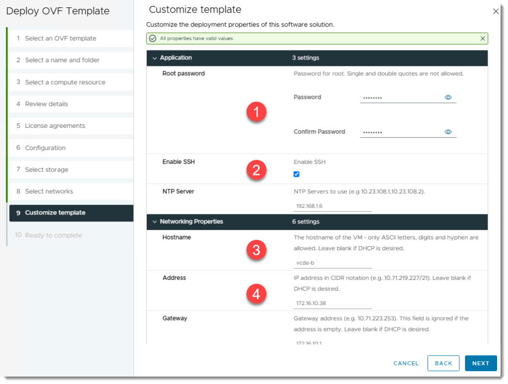 - Root password: Ustaw hasło root dla pierwszego logowania do VCDA.(przy pierwszym logowaniu trzeba zmienić hasło)