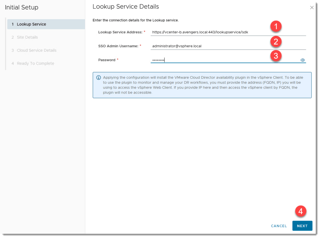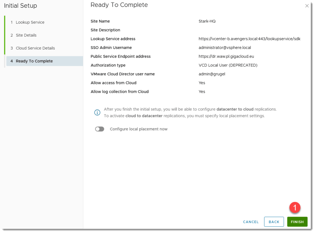 Gratulacje! Pomyślnie zainstalowałeś VMware Cloud Director Availability w swoim środowisku vCenter Server.