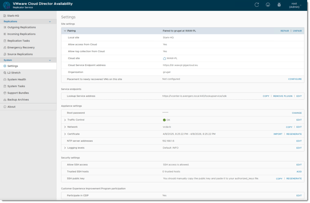 Ten przewodnik opisuje proces instalacji VMware Cloud Director Availability (VCDA) w środowisku lokalnym VMware vCenter Server. VCDA umożliwia replikację i migrację maszyn wirtualnych między środowiskami lokalnymi a chmurą opartą na VMware Cloud Director. Instalacja dokonana została na podstawie testowego wdrożenia u dostawcy chmury VMware Cloud Director w Gigacloud