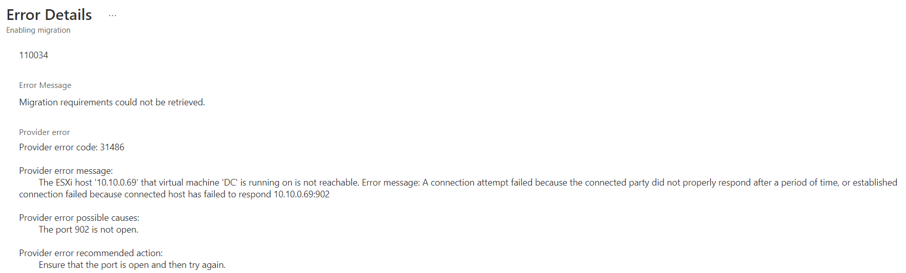 Można by się zastanawiać poco nam ta komunikacja skoro nie mamy dostępu bezpośrednio do ESXi hasłem roota. Jednym z momentów otwarcia tego portu jest używanie oprogramowania migracyjnego. W tym przypadku niech będzie to przykład “Azure Migrate”, który podczas migracji wykonuje szereg tasków weryfikacyjnych i jeden z nich sprawdza komunikację sieciową właśnie po tym porcie.