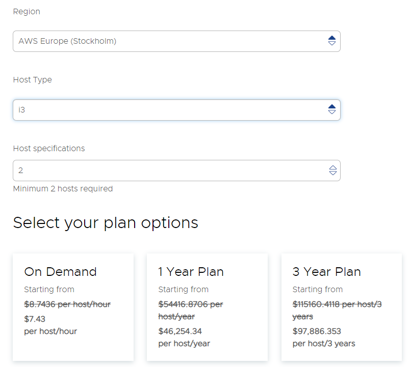 Zacznijmy od tego, że aby wykupić klaster VMC (VMware on AWS – będę to używał naprzemiennie) jedną z decyzji, jaką musimy podjąć jest wybór spośród 3 planów rozliczeniowych (na dzień 24.1.2022):