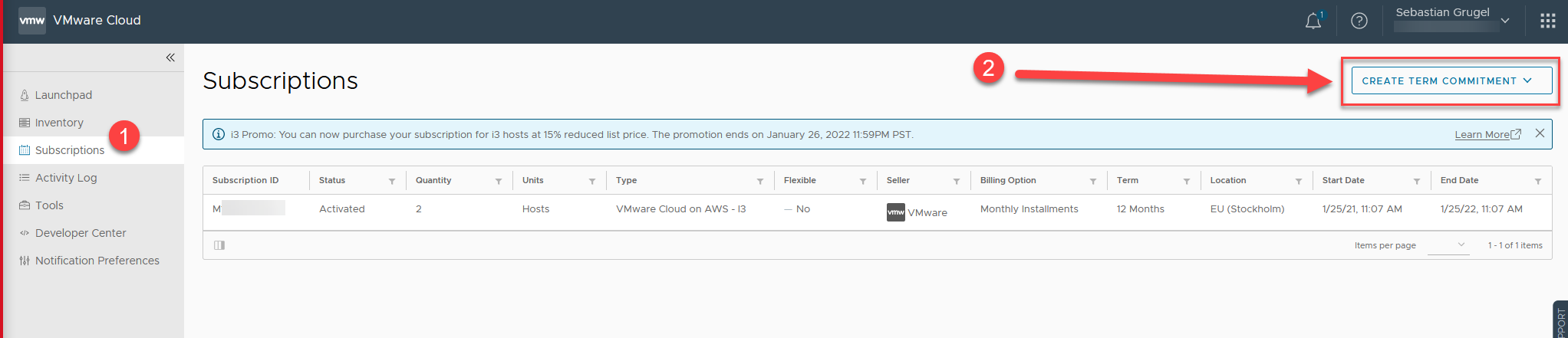 | Przechodzimy do sekcji “Subscriptions” i dalej przycisk CREATE TERM COMMITMENT | |