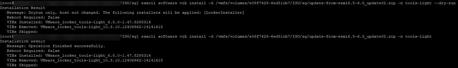 Dalej zweryfikowałem wersje tools-light zainstalowaną obecnie na ESXi. Oczekiwałem wersji “6.5.0-1.47.8285314”. Tym razem działała komenda:.