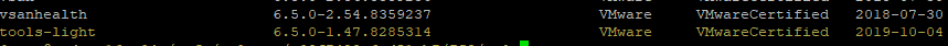 Dalej zweryfikowałem wersje tools-light zainstalowaną obecnie na ESXi. Oczekiwałem wersji “6.5.0-1.47.8285314”. Tym razem działała komenda:.