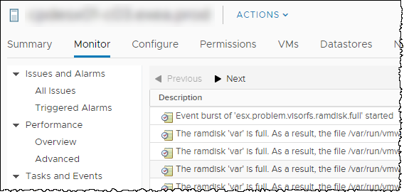 Pełna partycja /var na serwerze HPE ProLiant BL460c Gen9 z ESXi 6.7 U3