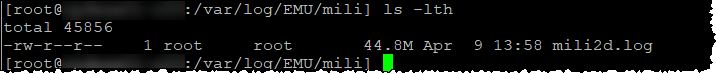 1. „Usuń plik mili2d.log z folderu / tmp za pomocą polecenia: rm /var/log/EMU/mili/mili2d.log