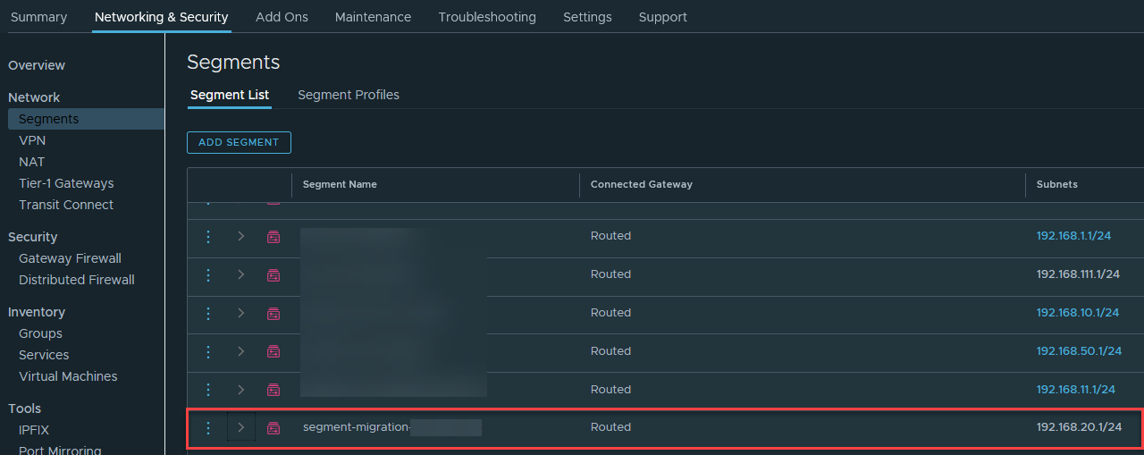 • sieć którą konfigurujemy to “segment-migration-XXXXX” z gateway 192.168.20.1/24