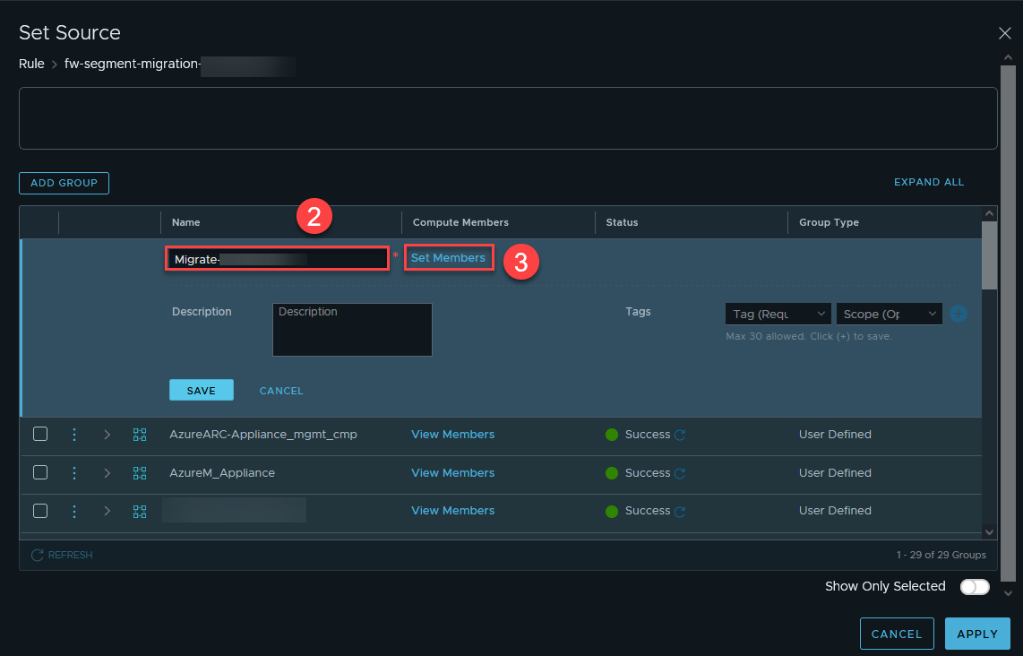 3. Definiujemy source klikając “ołóweczek” (w tym przypadku będzie to sieć w której działa workload)