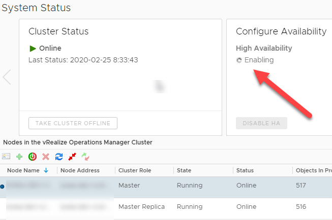 Bardzo trudno zweryfikować poprzez GUI co się dzieje obecnie i na jakim etapie jest włączanie HA (replikacja).