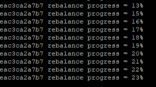 Poniższa komenda pokaże nam status REBALANCINGU (w tym przypadku będzie to proces replikacji)